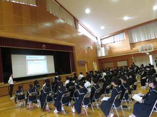 総合的な学習の時間について全校集会を行いました。今年度も①キャリア教育②笹間神楽の継承活動③探究的な学習を行います。③の探究的な学習では、地域の良さや課題に気づき、考え、行動することで、よりよく問題を解決する力を身に付けてほしいと思っています。
